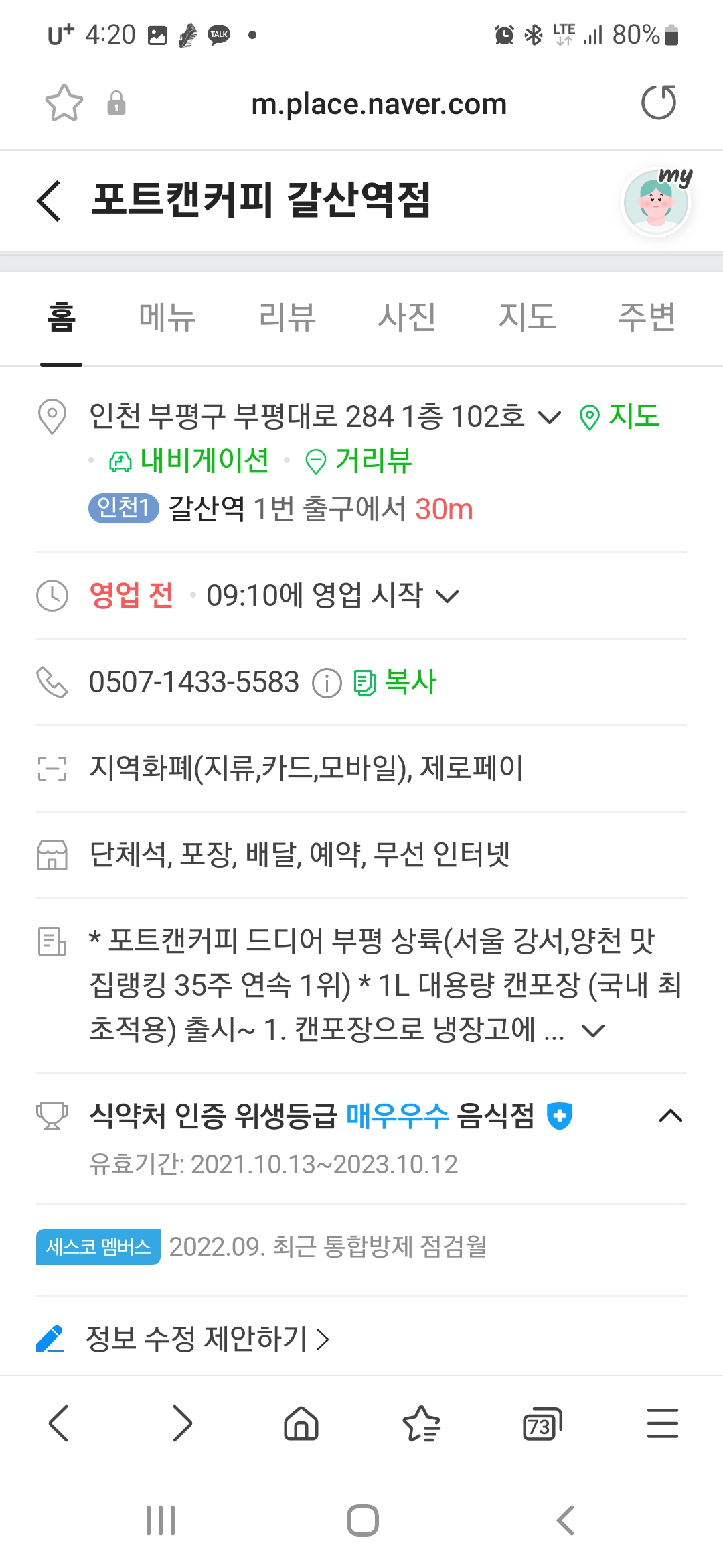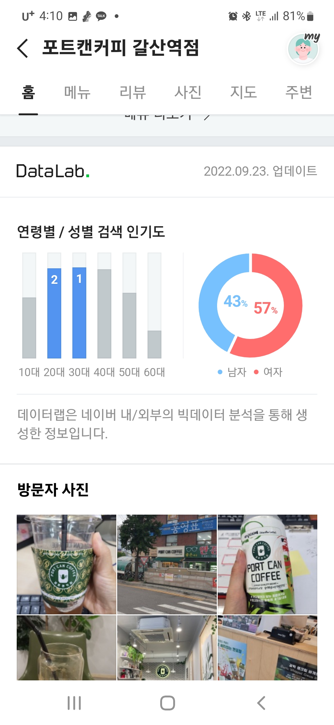 포트 캔커피 갈산동점입니다!